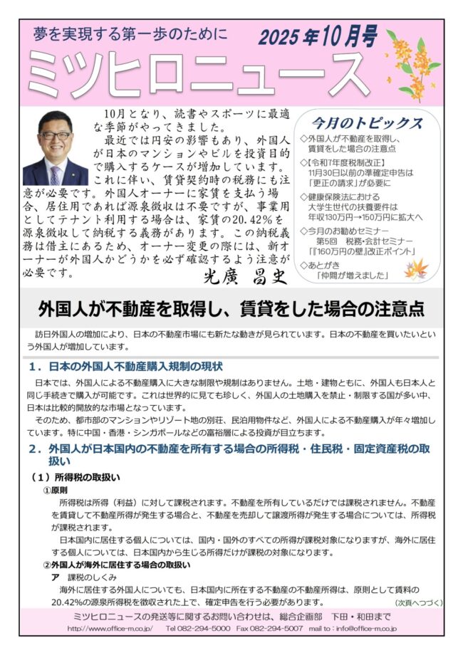 ミツヒロニュース10月号を発行しました。