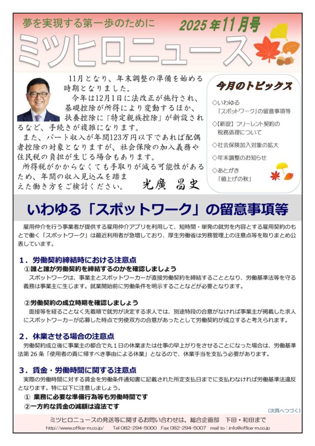 ミツヒロニュース11月号を発行しました。