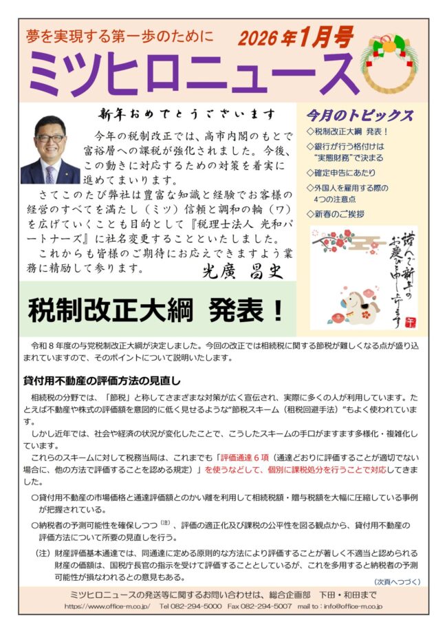 令和8年度の与党税制改正大綱が決定しました。今回の改正では相続税に関する節税が難しくなる点が盛り込まれていますので、そのポイントについて説明いたします。